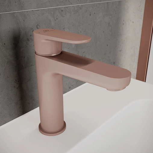 Смеситель для умывальника Cerafine О неповоротный излив, розовый, с донным клапаном