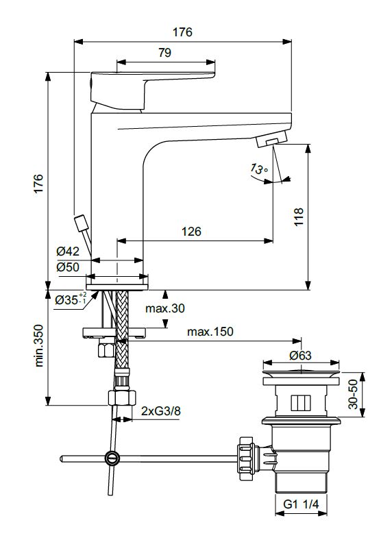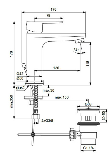 Cerafine О, смеситель для умывальника, неповоротный излив, с донным клапаном, арт. BC496AA, Ideal Standard