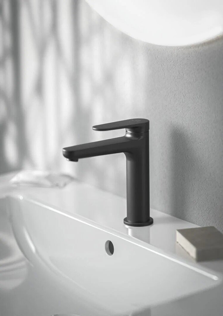 Смеситель для умывальника Cerafine О nuovo неповоротный излив, чёрный цвет, с донным клапаном