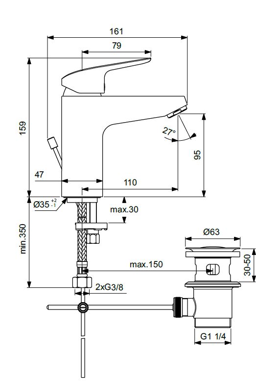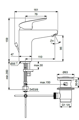 Ceraflex, смеситель для умывальника, неповоротный излив, с донным клапаном, система монтажа easy-fix, арт. B1712AA, Ideal Standard