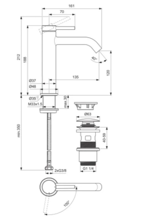 Смеситель для умывальника Ceraline nuovo неповоротный излив, с донным клапаном, холодный старт