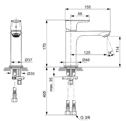Connect Air, смеситель для умывальника, неповоротный излив, стальной цвет, без донного клапана, silver storm, арт. A7015GN, Ideal Standard