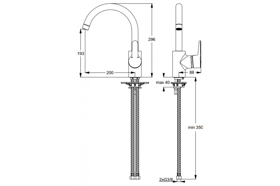 Смеситель для умывальника Connect однорыжачный, поворотный излив, без донного клапана