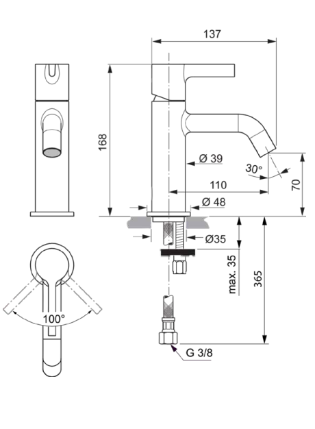 Joy, смеситель для умывальника, неповоротный излив, чёрный цвет, без донного клапана, арт. BC776A5, Ideal Standard