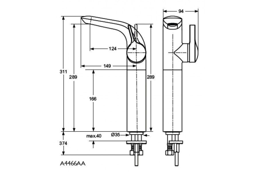 Melange, смеситель для умывальника, неповоротный излив, без донного клапана, однорыжачный, удлиненный корпус, арт. A4266AA, Ideal Standard