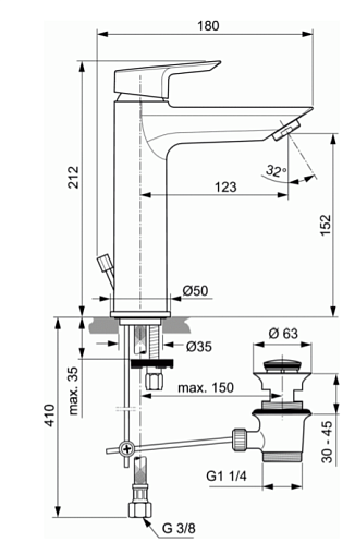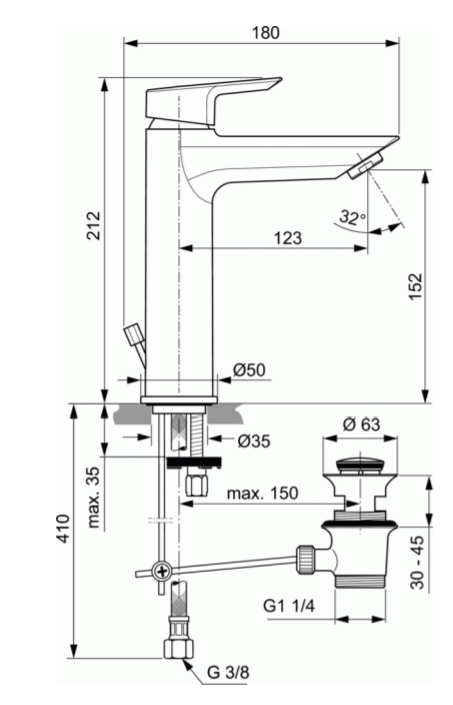 Tesi, смеситель для умывальника, неповоротный излив, с донным клапаном, хром, арт. A6563AA, Ideal Standard