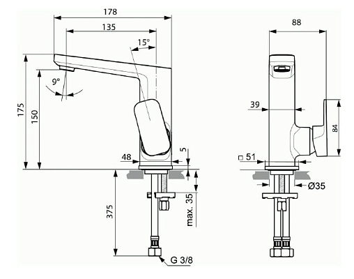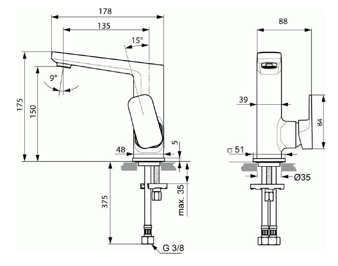 TonicII, смеситель для умывальника, неповоротный излив, без донного клапана, арт. A6333AA, Ideal Standard