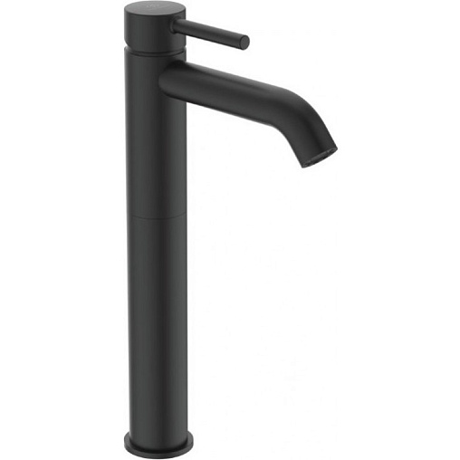 Ceraline 25см, высокий смеситель на столешницу, неповоротный излив, чёрный цвет, с донным клапаном, излив 15 см, матовый, арт. BC194XG, Ideal Standa