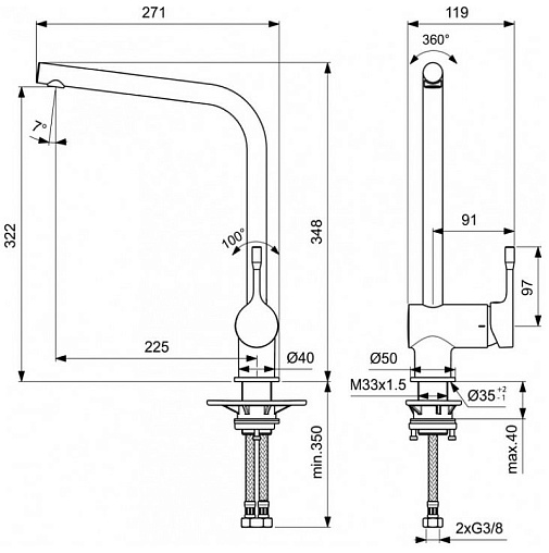 Ceraline 32,2см, высокий смеситель на столешницу, поворотный излив, чёрный цвет, без донного клапана, матовый, арт. BC174XG, Ideal Standard