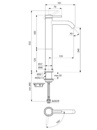 Высокий смеситель на столешницу Ceraline nuovo 33,2 см, неповоротный излив, без донного клапана