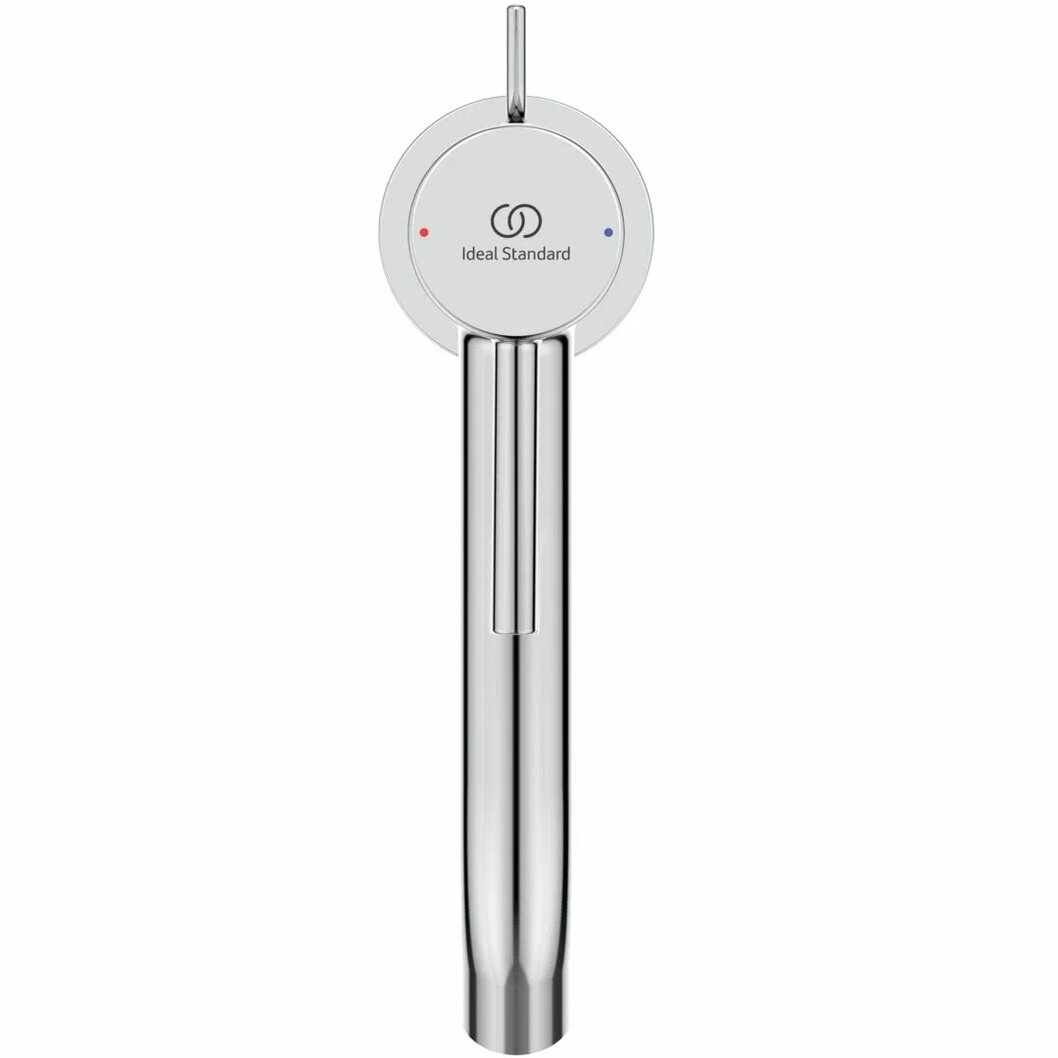 CERALINE NUOVO Смеситель для раковины H240, керамический картридж FirmaFlow 28 мм с функцией HWTC (ограничение максимальной температуры горячей воды), металлическая рукоятка с индикаторами горячей / холодной воды, аэратор 3,8 л/мин, система монтажа EASY-FIX (облегченный монтаж), гибкая подводка G3/8", технология Blue Start. Упаковка без пластика.