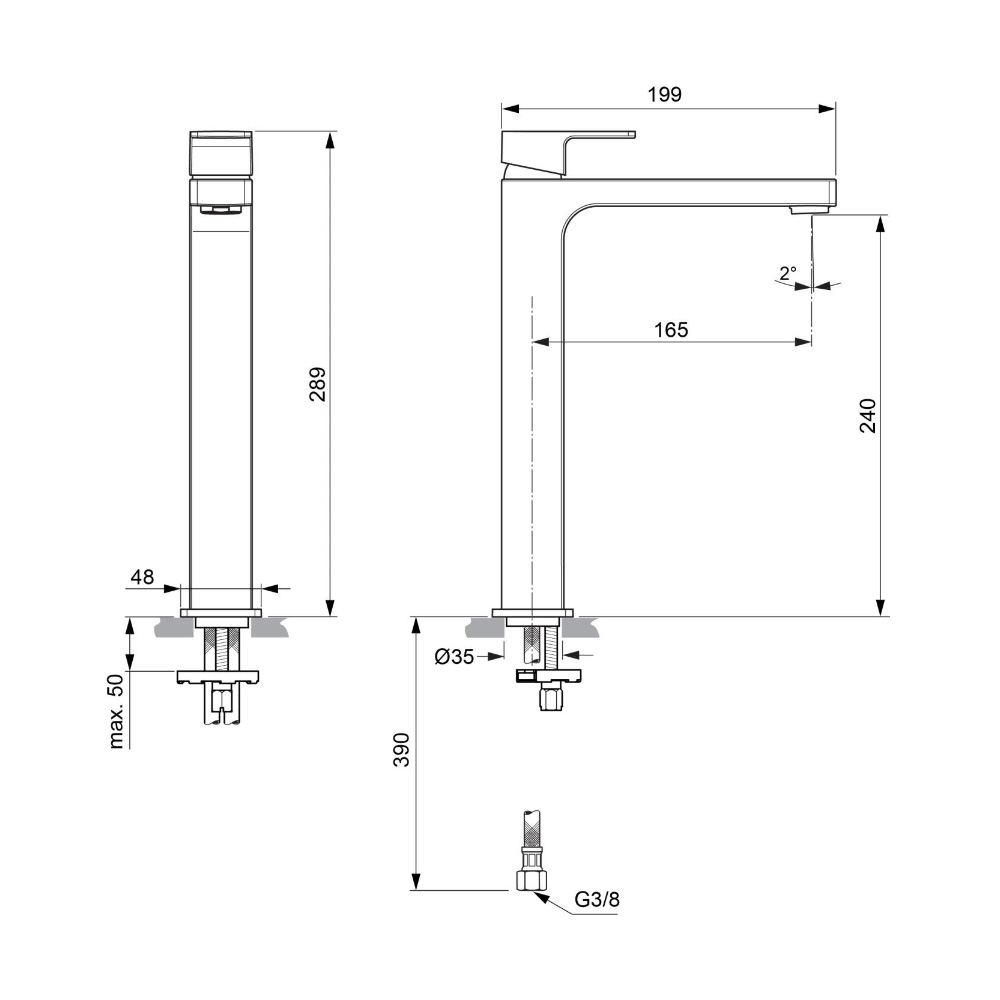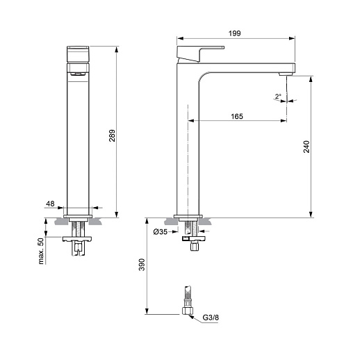 Edge 24см, высокий смеситель на столешницу, неповоротный излив, без донного клапана, арт. A7114AA, Ideal Standard