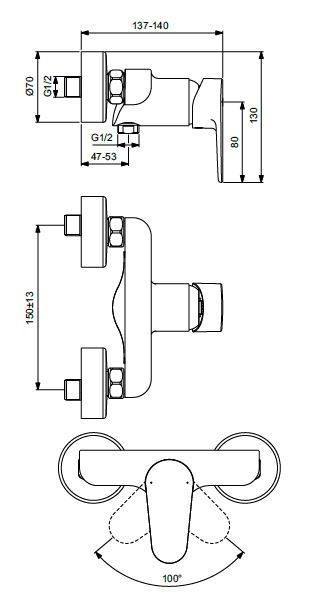 Cerafine О, настенный смеситель без излива, без лейки, арт. BC499AA, Ideal Standard