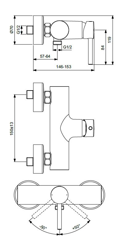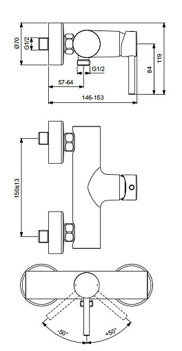 Ceraline, настенный смеситель без излива, без лейки, арт. BC200AA, Ideal Standard