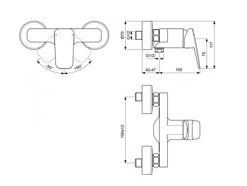 Настенный смеситель без излива Ceraplan без лейки