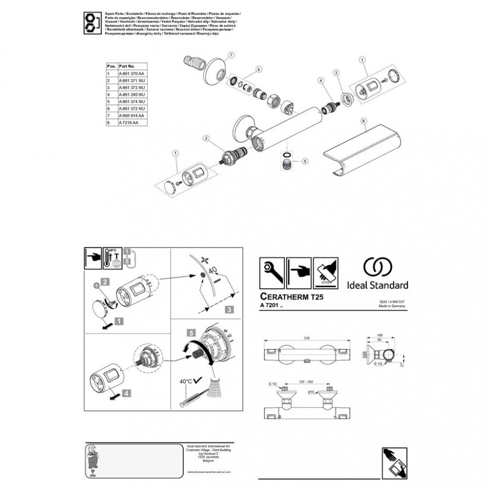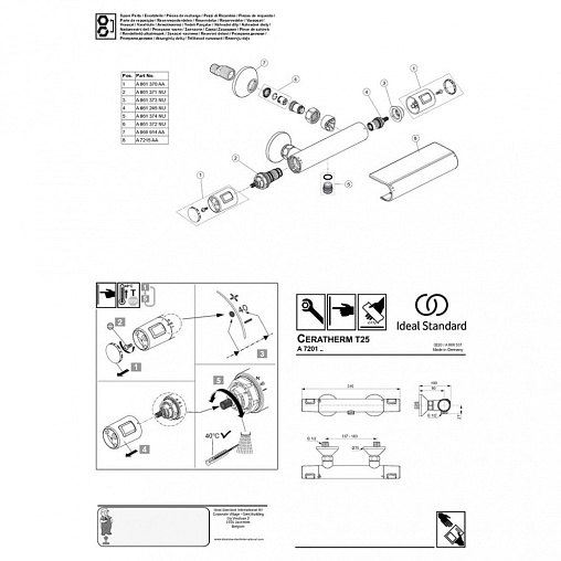 Ceratherm, настенный смеситель без излива, без лейки, термостат, арт. A7201AA, Ideal Standard