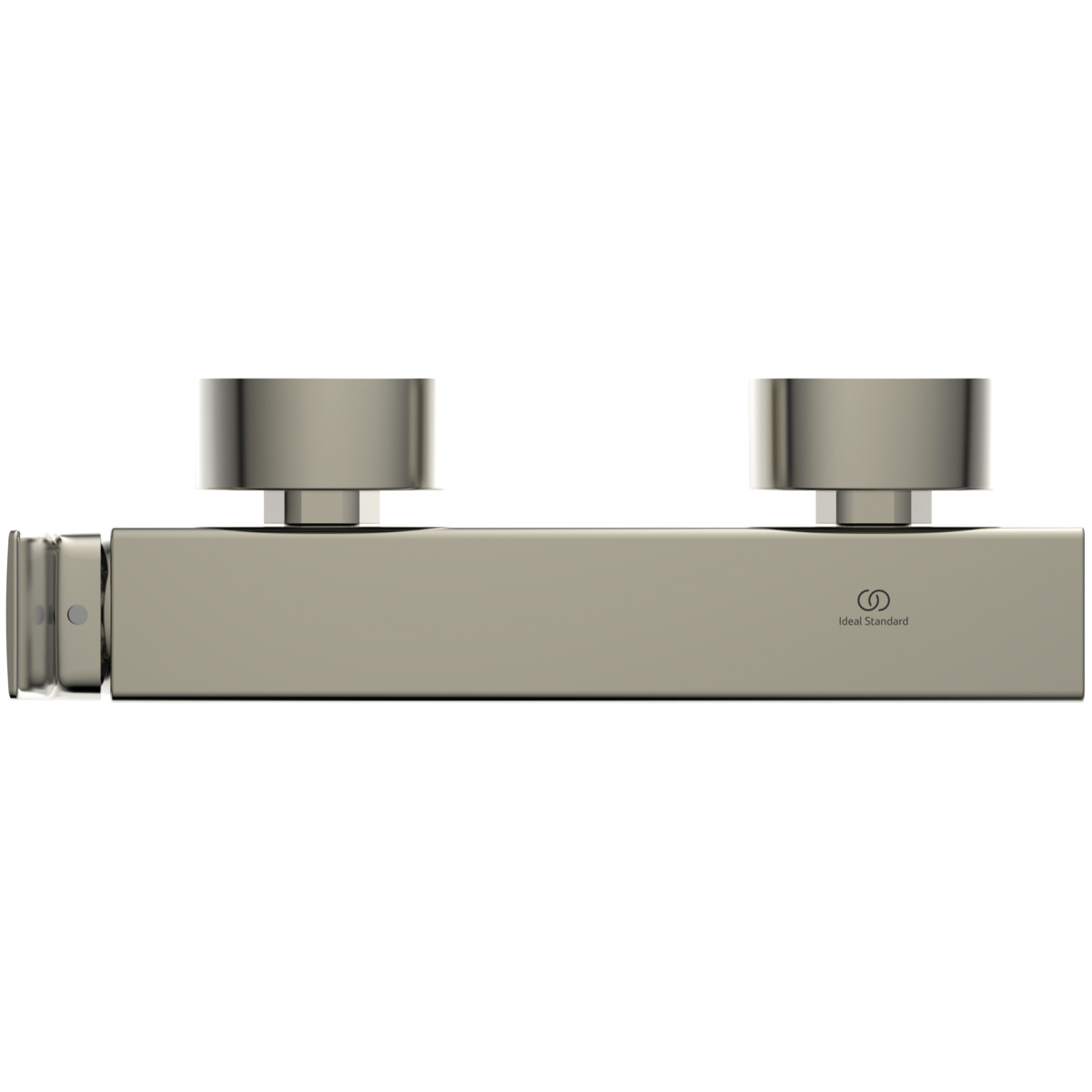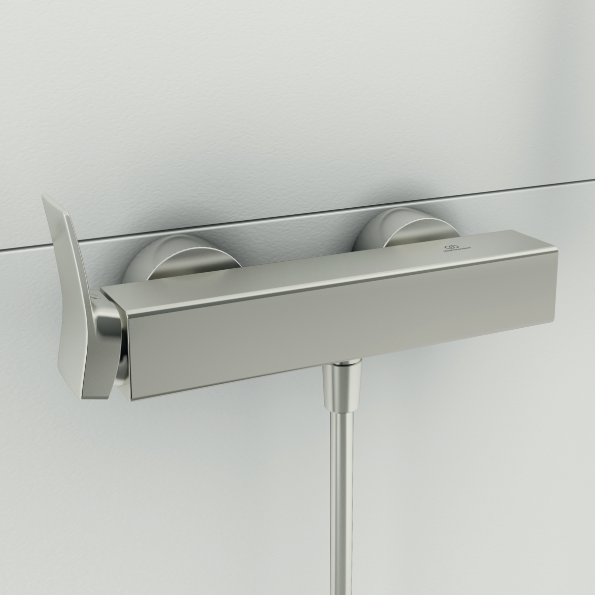 CONCA Настенный смеситель для душа, керамический картридж FirmaFlow 38 мм, с функцией HWTC (ограничение максимальной температуры горячей воды), без функции CLICK, логотип Ideal Standard на корпусе, металлическая рукоятка без индикаторов горячей/холодной воды, обратный клапан, эксцентрики с шумопонижателем. Цветное покрытие - технология PVD