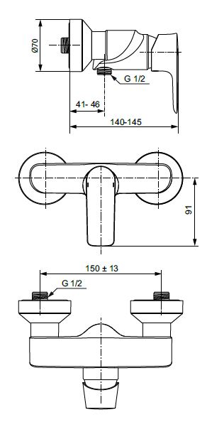 Однорукоятковый настенный смеситель для душа
