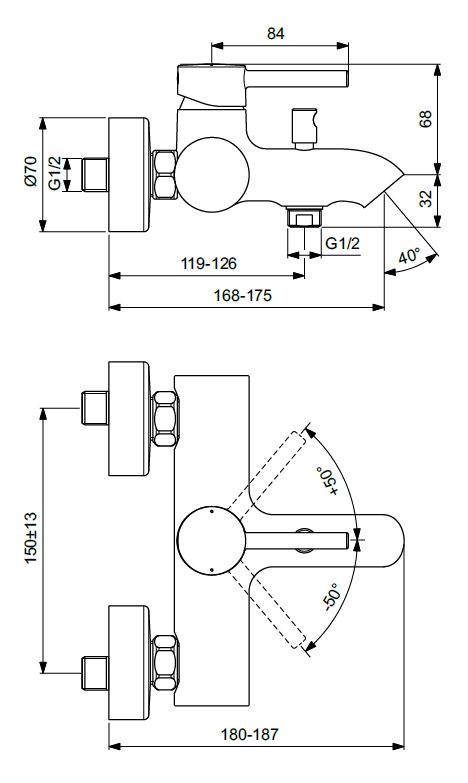 Настенный смеситель для ванны/душа