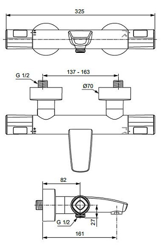 Настенный термостатический смеситель для ванны/ душа