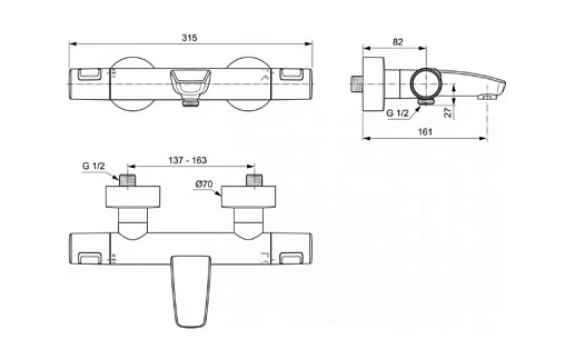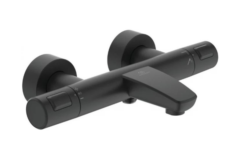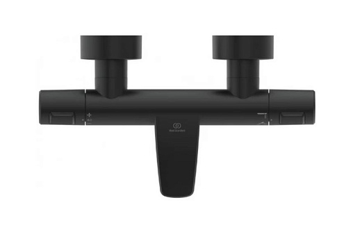 Ceratherm T25 , настенный смеситель, неповоротный излив, с выходом на душ (без лейки), чёрный цвет, термостат, матовый, арт. A7544XG, Ideal Standard
