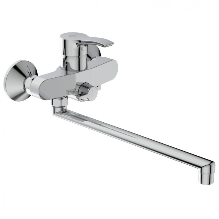 Однорукоятковый настенный смеситель для ванны/душа с длинным изливом, с керамическим переключателем, монтаж на стандартных эксцентриках,