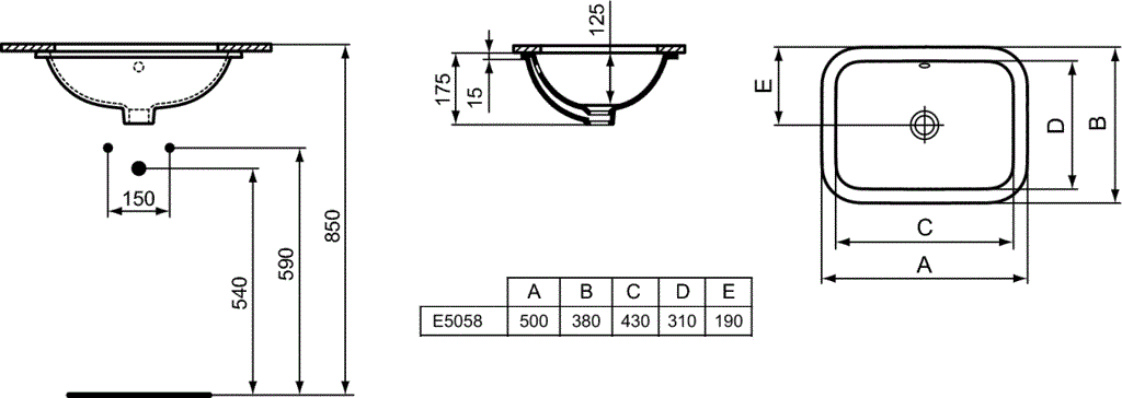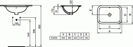 Connect 43х31см, встраиваемая снизу раковина, санфарфор, арт. E505801, Ideal Standard