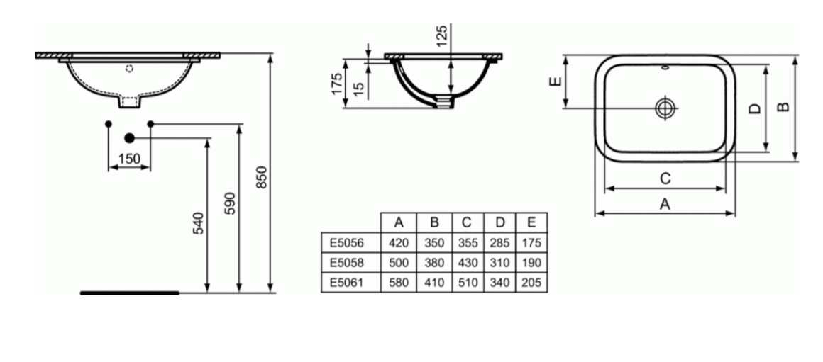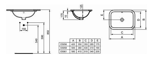 Connect 58х41см, встраиваемая снизу раковина, санфаянс, арт. E506101, Ideal Standard