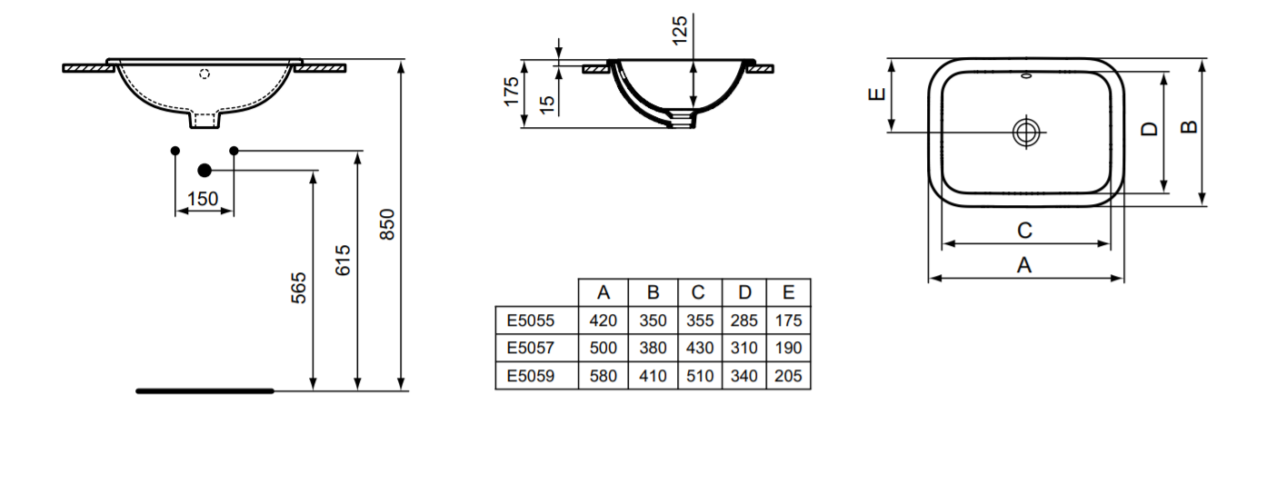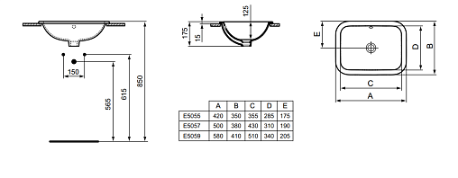 Connect 58х41см, встраиваемая сверху раковина, санфаянс, с отверстием перелива, арт. E505901, Ideal Standard