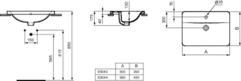 Встраиваемая сверху раковина Connect 58х43 см, санфарфор