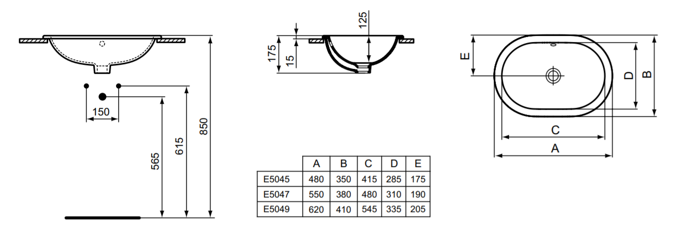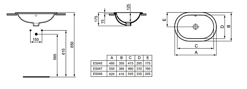 Connect 62х41см, встраиваемая сверху раковина, санфаянс, без отверстия под смеситель, арт. E504901, Ideal Standard