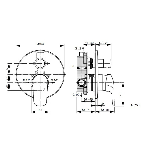 Ceraflex, встраиваемый в стену смеситель без излива, 2 функции, арт. A6758AA, Ideal Standard