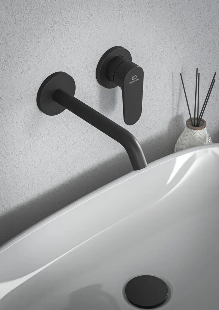 Настенный смеситель для раковины Cerafine О nuovo неповоротный излив, чёрный цвет