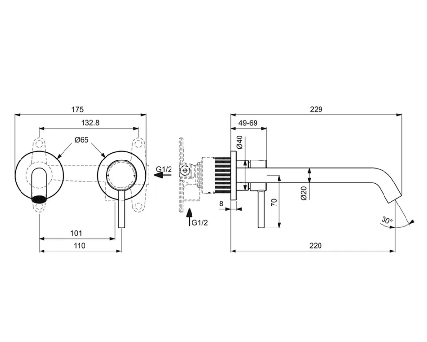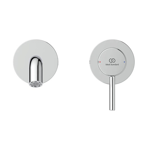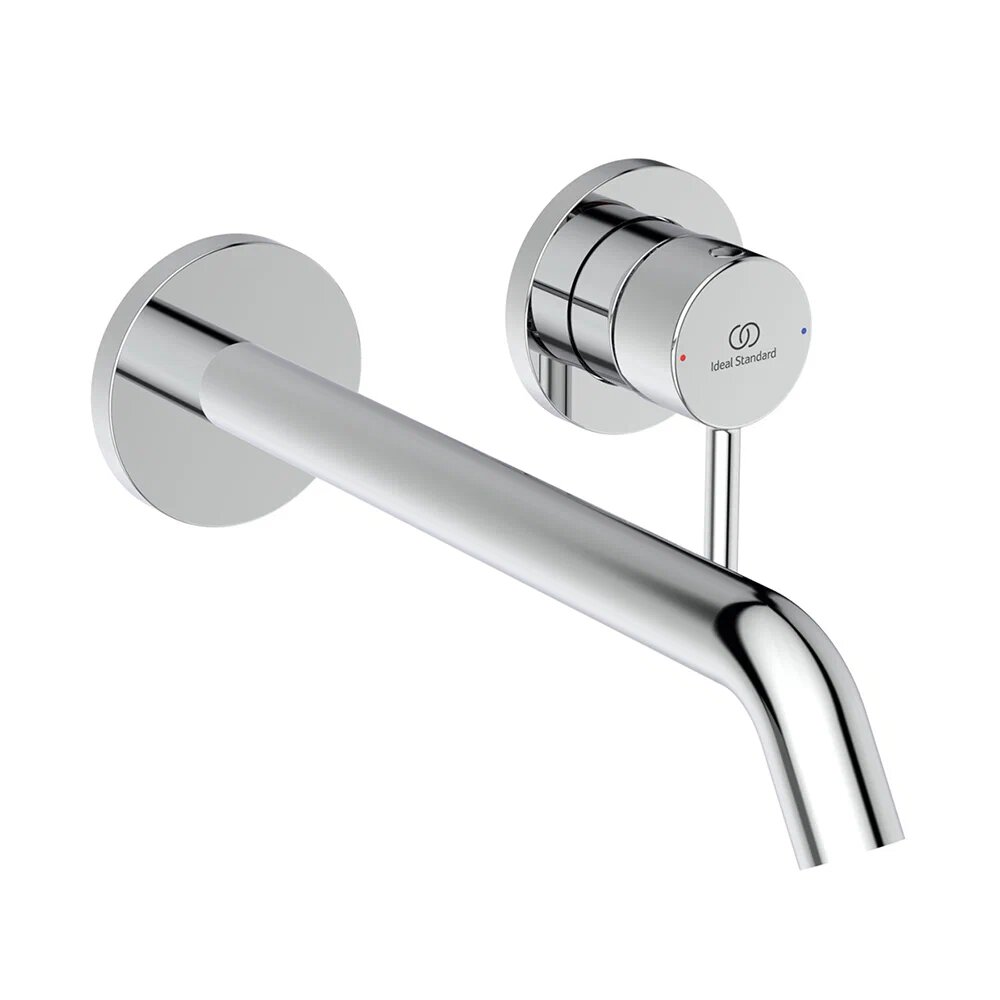 CERALINE NUOVO Настенный смеситель для раковины, для монтажа со встраиваемым комплектом A1313NU (заказывается дополнительно), трубчатый излив 220 мм, аэратор 3,8 л/мин, картридж 28 мм FirmaFlow с функцией HWTC, металлическая рукоятка с индикаторами горячей / холодной воды
