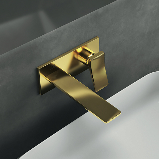 Внешняя часть встраиваемого смесителя для раковины Conca длина излива 18см, золото шлифованное