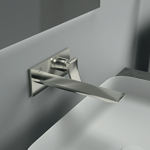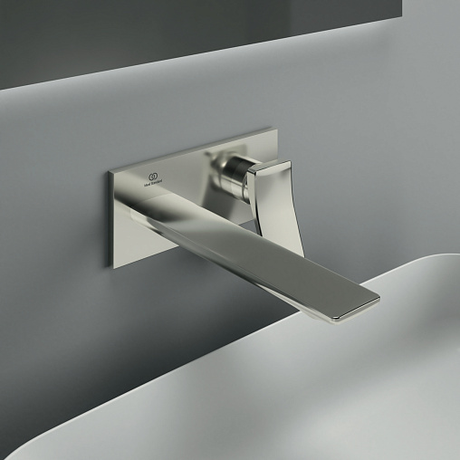 CONCA Встраиваемый смеситель для раковины, комплект №2 (внешняя часть), керамический картридж 28 мм, с функцией HWTC (ограничение максимальной температуры горячей воды), без функции CLICK, литой излив 220 мм, металлическая накладка с логотипом Ideal Standard, металлическая рукоятка без индикаторов горячей/холодной воды, аэратор Coin slot M24x1 с ограничением потока 5 л/мин., для монтажа с комплектом №1 A1313NU (встраиваемая часть). Цветное покрытие - технология PVD