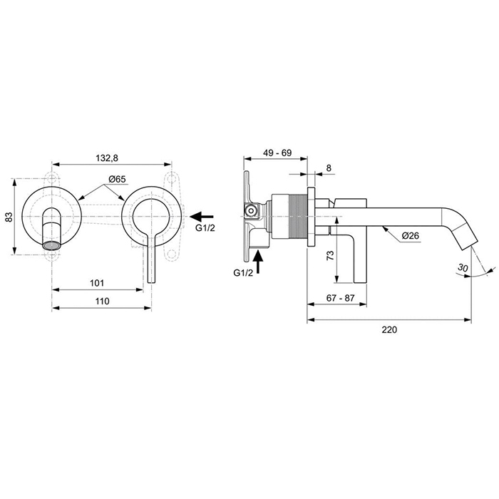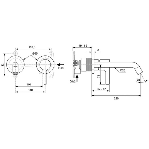 Joy, внешняя часть встраиваемого смесителя для раковины, длина излива 22см, стальной цвет, (silver storm), арт. A7379GN, Ideal Standard