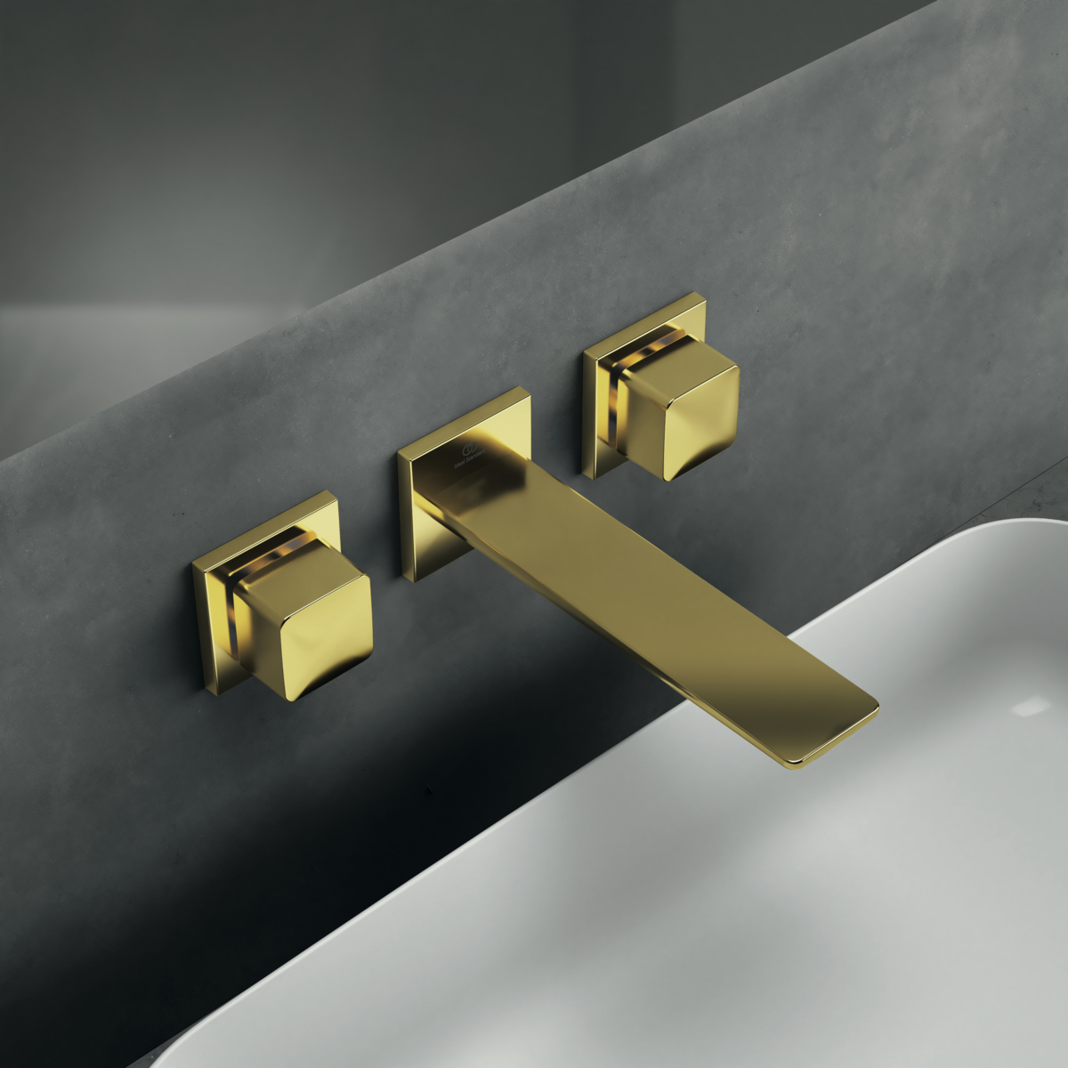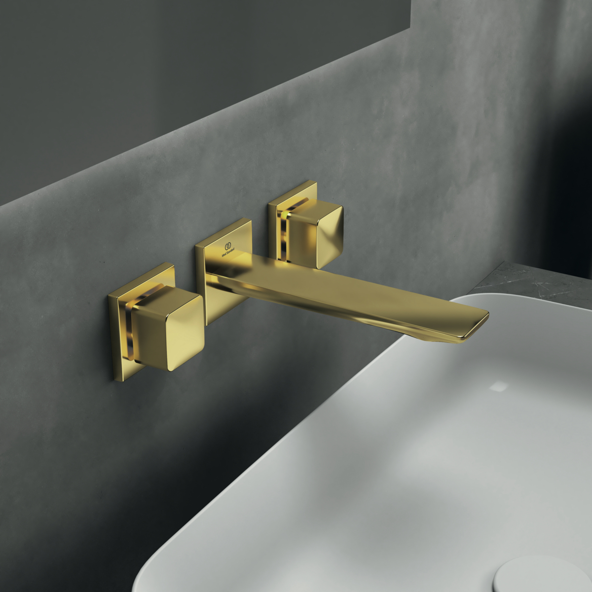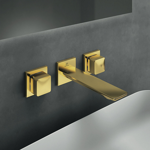 Встраиваемый в стену смеситель для раковины Conca длина излива 18см, золото шлифованное
