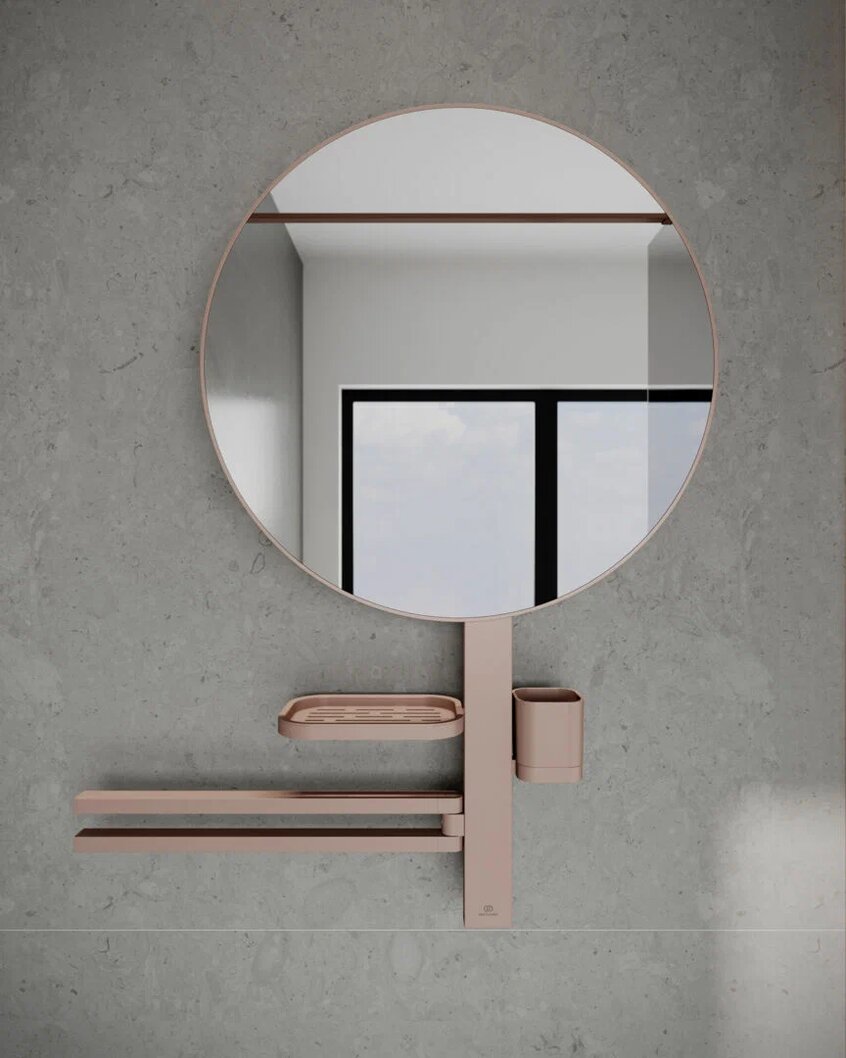ALU+ Beauty Bar L Комплект аксессуаров, состоящий из: штанги 800 мм с направляющими справа и слева для установки аксессуаров по выбору при первичном монтаже; фиксированного зеркала 500 мм; большой полочки 208 мм (макс. нагрузка 7кг); стаканчика; полотенцедержателя, угол поворота 90°