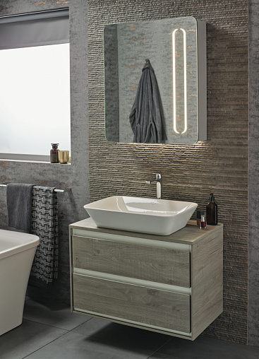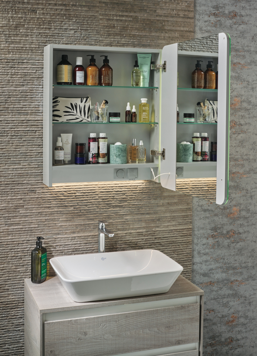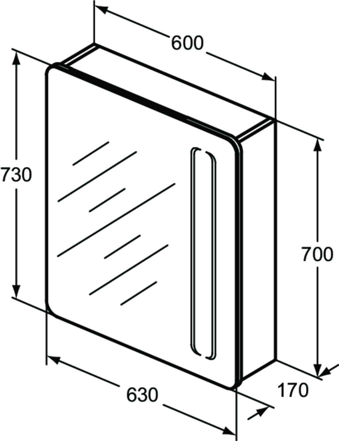 MIRROR&LIGHT Зеркальный шкафчик 60 см, одна двухсторонняя зеркальная дверца с доводчиком, с интегрированной светодиодной фронтальной подсветкой, интегрированная нижняя светодиодная подсветка, самоклеющаяся металлическая ручка, магнитный держатель, выключатель, розетка для бритвы, регулируемая стеклянная полка, крепеж в комплекте, 220-240 V, 50-60 Hz, IP44, Class II Aluminium Effect (Алюминий)