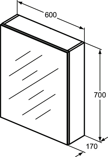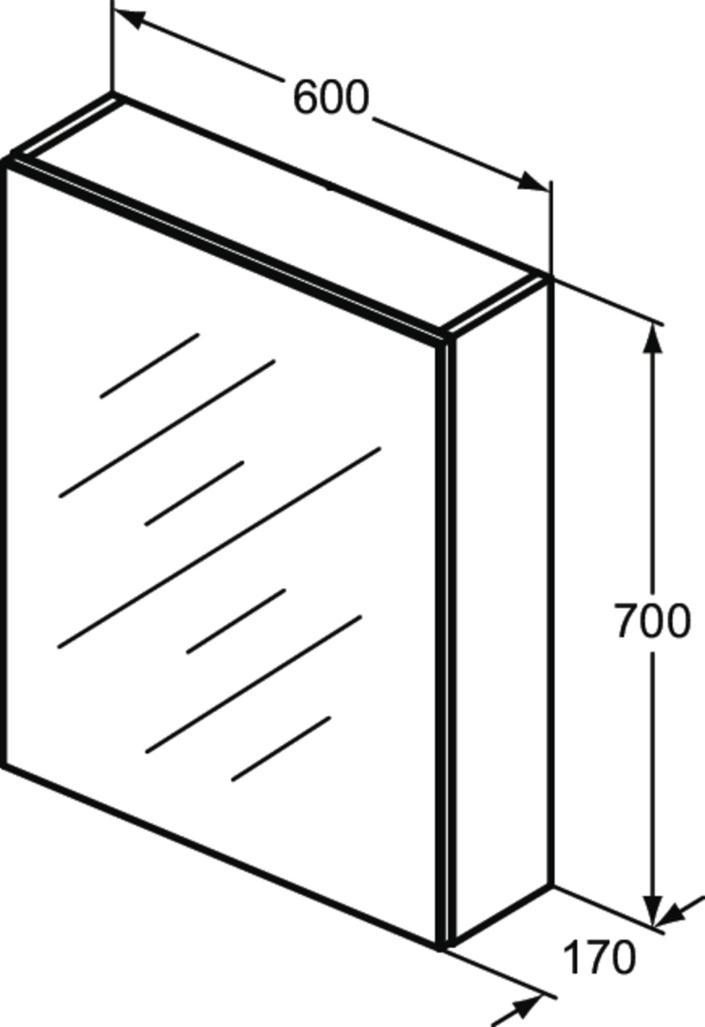MIRROR&LIGHT Зеркальный шкафчик 60 см, одна односторонняя зеркальная дверца с доводчиком, внутреннее косметическое зеркало, самоклеющаяся металлическая ручка, регулируемая стеклянная полка, крепеж в комплекте